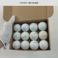 B/C-klass Àr en blandning av B- och C-bollar. De Àr fullt spelbara men har tydliga skrapmÀrken, smuts eller missfÀrgningar som gör att de inte hÄller samma yttre standard som högre klasser. Vissa bollar kan ha en mattare yta eller mindre repor, men inga sprickor eller defekter som pÄverkar bollens flyg. Ett prisvÀrt alternativ för dig som frÀmst bryr dig om spelet och inte hur bollen ser ut.